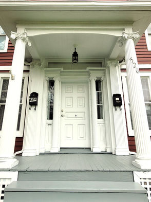 This grand Dutch Colonial was built in 1868 for Mr. Purington Call. Call was a carriage-trimmer by trade, and in 1881 sold the house to the Hall Family of 303 W. Church Street, who rented out the home until 1905 when it was sold to the Reverend Arthur Rudd. When Grace Church was built just two blocks down the street in 1904, Reverend Rudd became the church's first minister. He was a chaplain in France during World War I, and worked in Russia in war prisoner relief. Popular with the Russians, he was made an honorary captain in the Russian army. In 1918, the house was sold to Frederick Hill, who was president of Elmira Water & Light at the time of its merger into New York Gas & Electric.