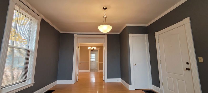 We purchased this property in 2009 as a duplex, with two bedrooms each. It features hardwood floors, oak kitchen cabinetry, tile floor bathrooms, and stained glass windows. The detailed color scheme we gave to the exterior of this home inspired the logo for our website. Additional amenities and utilities at this building include laundry in each unit, off-street parking, water, sewer, and trash collection.