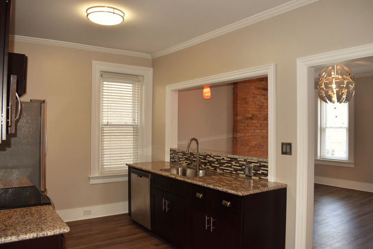 Beautiful apartment in a revitalized historic building. The large living room shares a breakfast bar with a well appointed kitchen; which is complete with granite countertops, stainless steel appliances, dishwasher, soft-close cabinetry, French door refrigerator, and separate dining area featuring exposed brick. The full bathroom provides ample cabinets, a spacious vanity, deep soaking tub, and even a laundry closet complete with washer & dryer! The central hallway features two spacious closets, and leads to the good-sized bedroom with more exposed brick and the door to an incredible private covered deck overlooking the Chemung River. Off-street parking is available in our parking lot across the street. Tenant pays $1395 rent per month plus their own electric and internet. Heating and cooling in this unit are both electric. We pay the water, sewer, and trash collection.